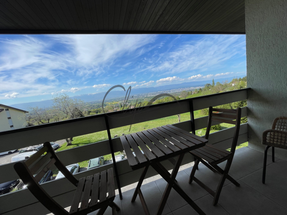 Idillique, proche Genève, sur les hauteurs de Collonges sous Salève, studio entièrement rénové avec balcon et une vue époustouflante sur Genève et le Salève. Superbe parc autour de la résidence. Le studio est équipé d'une cuisine et électroménager neuf, un séjour très lumineux, salle de bains avec baignoire et wc, un dressing. En annexe : un grenier et place de parking collectif.
